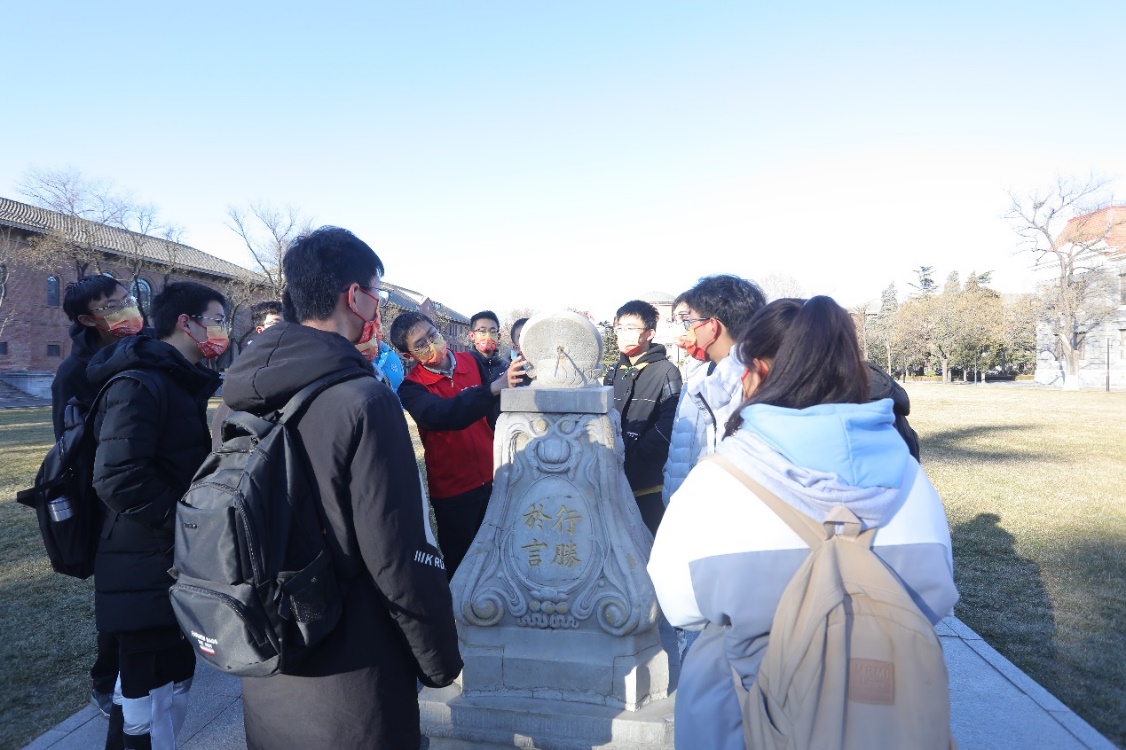 历史是厚重的,也是鲜活的。为了将相对枯燥的文献历史与实地景观相结合,为同学们带来沉浸感十足的游览体验,讲解队精心设计了讲解词。为了拉近同学们与历史的距离,讲解队选择了大家耳熟能详的经典故事作为切入点,唤起大家的情感共鸣,例如在讲解科学馆时从《马兰花开》中的邓稼先展开介绍“两弹一星”元勋;讲解西阶时则追溯其建造初衷,结合许多院系的复系历史来引出院系调整中清华人为祖国高等教育作出的贡献。在依托具体点位设计讲解词之外,还在讲解路途中加入了“国庆庆典中的清华人”“清华学子从军行”等与同学们生活息息相关的内容。
