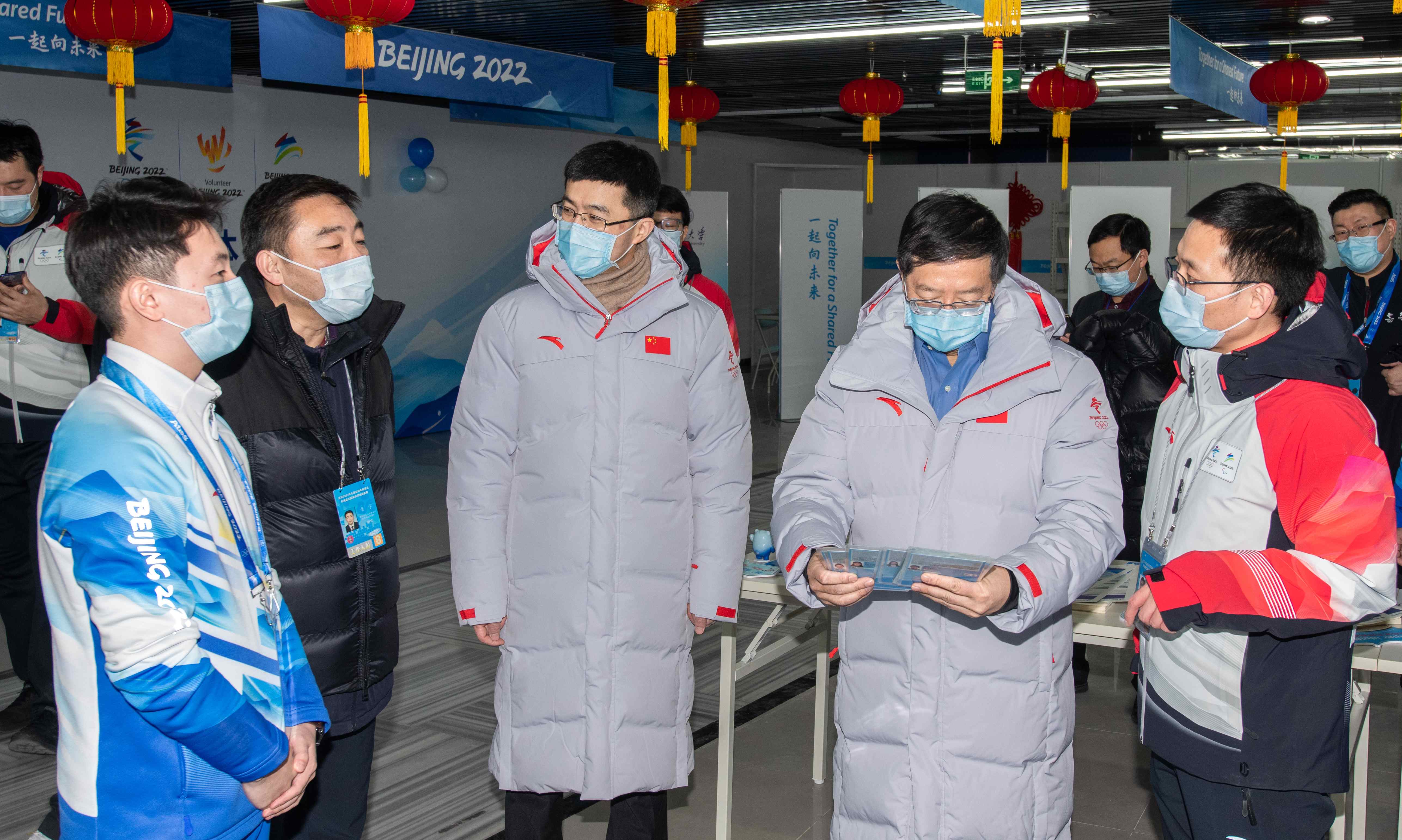 邱勇一行先后来到贵宾休息区、观众验票口、志愿者之家。在听取志愿者们逐一自我介绍并分享参与志愿服务的切身体会后,邱勇对志愿者们积极备战冬奥的良好精神面貌给予高度肯定。