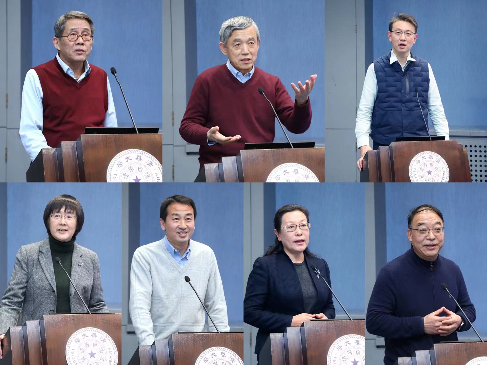 各教学研究机构负责人先后汇报了党建工作、人才培养、学术研究、队伍建设等方面的工作情况。高等研究院副院长李家强围绕“营造宽松自由学术环境、坚持基础科学前沿研究、建设人才高地”介绍了高研院在科研成果、人才引进等方面的亮点工作。数学科学中心副主任郑绍远通过一组数据回顾了全年的成果,重点介绍了学生培养和人才引进等方面工作。国际与地区研究院副院长赵劲松重点介绍了研究院师资发展、人才培养等方面工作。未来实验室主任徐迎庆分享了实验室在嗅觉、触觉等领域的科研创新成果。脑与智能实验室首席研究员刘嘉介绍了实验室在脑科学与人工智能的交叉领域开展的研究及成果。低碳能源实验室主任李政分享了实验室在服务中央决策、服务学校碳中和战略、助力气候外交和中美气候合作等方面取得的重要进展和贡献。航空发动机研究院副院长帅石金介绍了航发院的发展模式与科研规划,以及在数字发动机、自适应变循环发动机等多个科研项目中取得的成果。