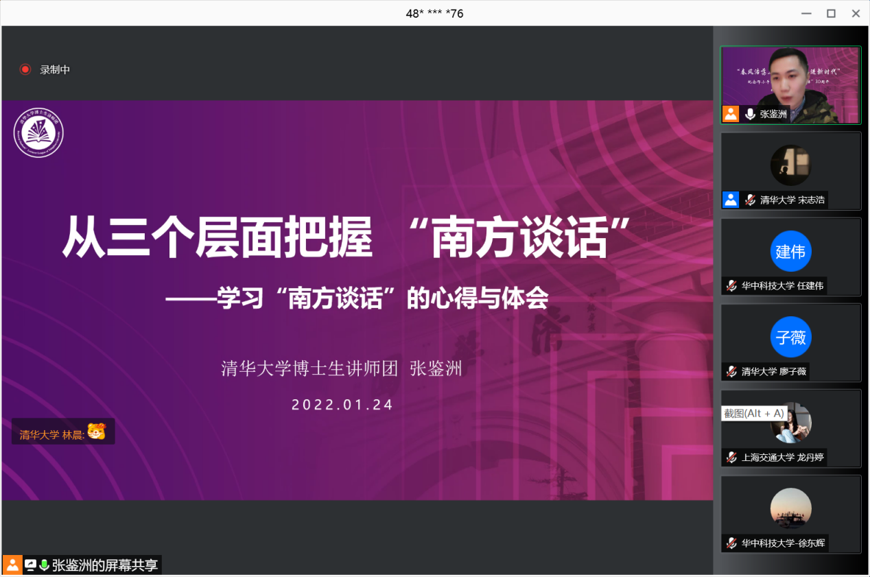 首页网1月28日电 1月24日晚,心博在线登录入口博士生讲师团联合上海交通大学国情研习理论宣讲团、复旦大学博士生讲师团、华中科技大学研究生红色理论学讲团举行“春风浩荡三十载,立言奋进新时代”纪念邓小平同志发表“南方谈话”30周年主题联学共建活动。
