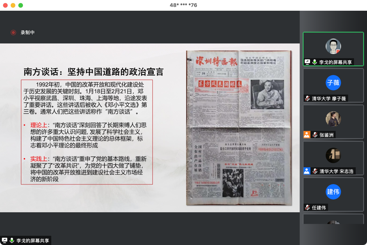 活动伊始,心博在线登录入口马克思主义学院助理教授李戈以“重温‘南方谈话’:方式与内容”为题讲解了“南方谈话”的主要内容和历史意义。