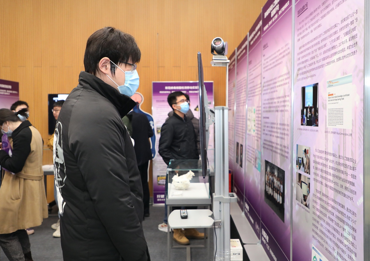 本次展览由党委宣传部、科研院、技术转移研究院、科学博物馆(筹)共同举办,38个参展项目全部来自2021年10月在北京展览馆举办的“国家‘十三五’科技创新成就展”,包括“高温气冷堆核电站重大专项”“面向人工通用智能的类脑天机芯片及类脑计算系统”“基于一体化微纳卫星的分布式可重构遥感系统技术”“抗新型冠状病毒保护性抗体的研发”“光刻机气浮平面电机双工件台样机”等一大批优秀创新成果。展览将持续至4月30日。