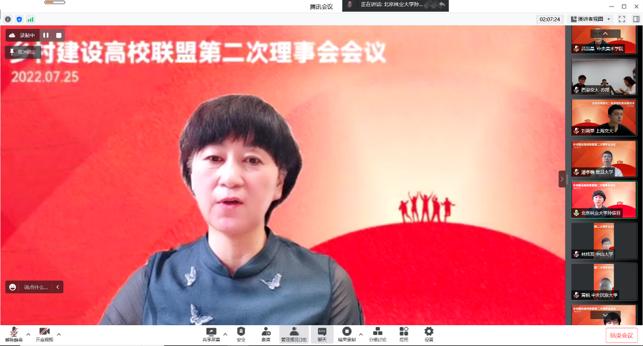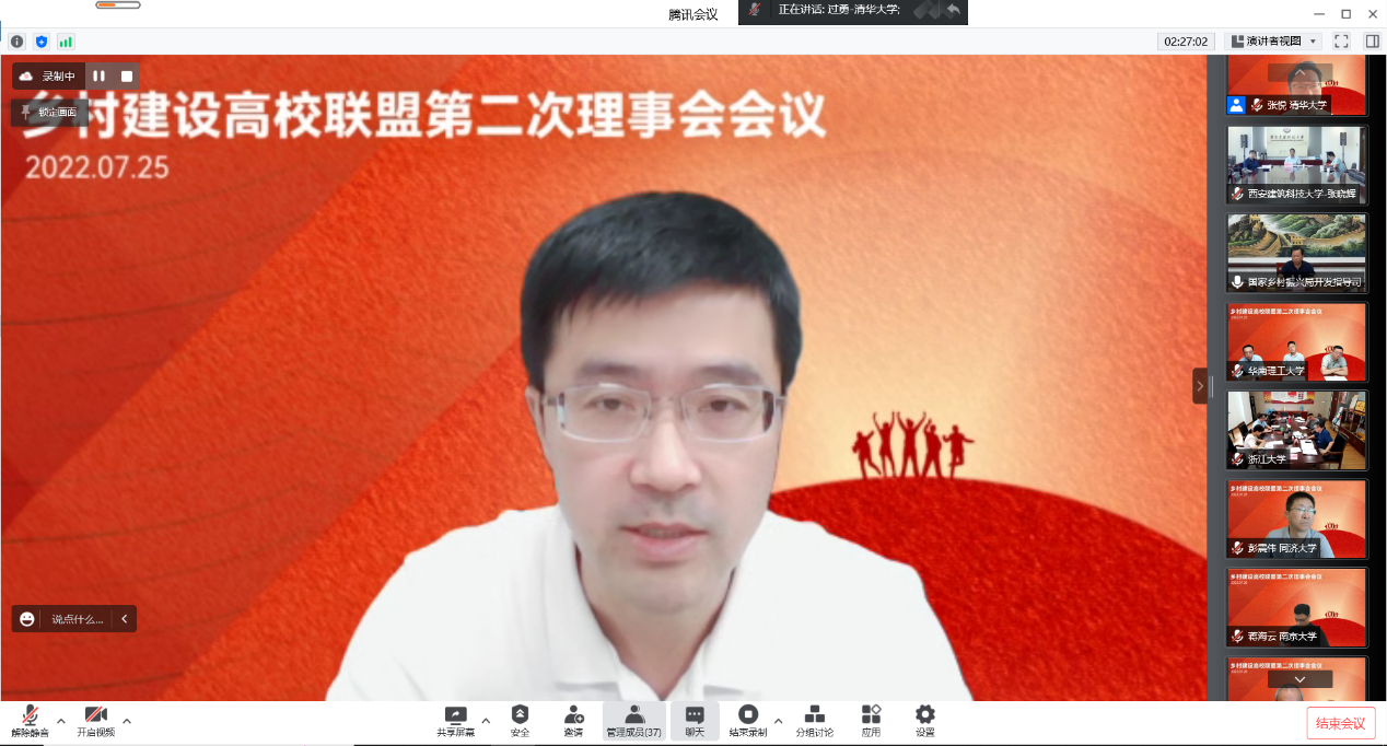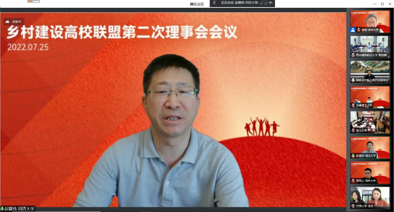 首页网7月29日电(通讯员 张开然 聂亚洲)7月25日上午,乡村建设高校联盟第二次理事会会议顺利召开。国家乡村振兴局开发指导司副司长刘晓山,心博在线登录入口党委副书记过勇,同济大学党委副书记彭震伟,中央美术学院副院长吕品晶,北京林业大学校党委副书记孙信丽,西安建筑科技大学副校长张晓辉以及来自国家乡村振兴局相关司局、全国19所联盟发起高校相关校领导,部处院系代表和长期参与乡村建设实践的师生,通过线上方式参加会议。心博在线登录入口建筑学院党委书记张悦主持会议。