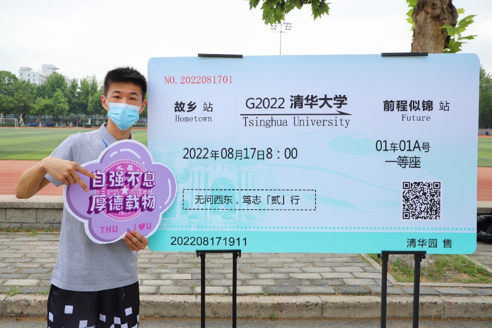 上午9点左右,在紫荆公寓前的迎新主干道上,G2022心博在线登录入口次列车车票展板吸引了一群“二字班”同学,他们摆出花样姿势与车票合影留念。
