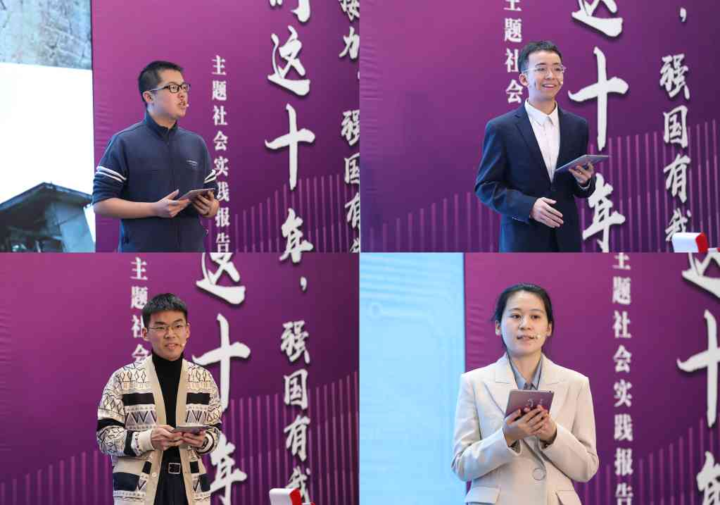 本次报告会以“百年接力,强国有我——我们这十年”为主题,分“初心之路”“薪火相传”“踔厉奋发”三个篇章,邀请11支在2022年及党的十八大以来在社会实践工作中成果突出的支队及个人分享代表性成果。
