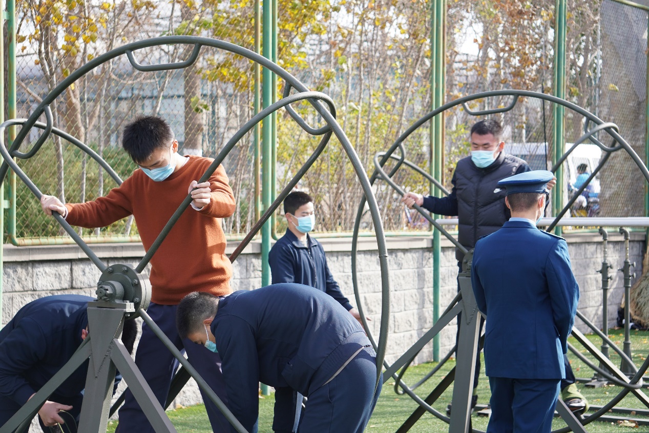 活动当天,“飞班”专项训练场也向师生开放,大家积极参与,体验固定滚轮、旋梯等飞行学员抗眩晕、抗颠簸训练器材。