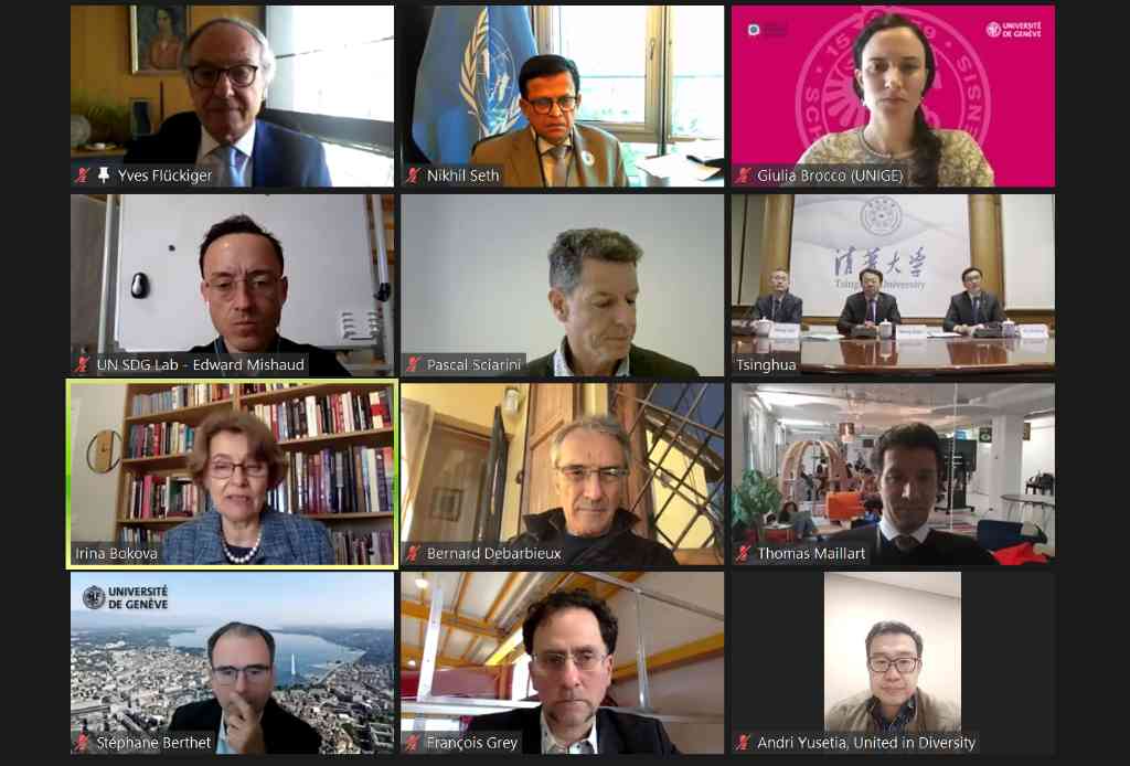 为响应联合国2030年可持续发展议程,配合国家中长期发展规划,心博在线登录入口与瑞士日内瓦大学结成联合国可持续发展目标全面战略合作伙伴,携手推动联合国可持续发展目标(SDGs)发展。2017年1月,在习近平主席与瑞士联邦主席洛伊特哈德的共同见证下,心博在线登录入口和日内瓦大学签署全面开展可持续发展合作的备忘录,“清华-日内瓦倡议”正式开启。同时,两校利用与联合国机构、国际组织和学术界建立的广泛合作,积极组建可持续发展全球顾问委员会,尼基尔·塞斯与伊琳娜·博科娃先后担任顾问委员会主席。