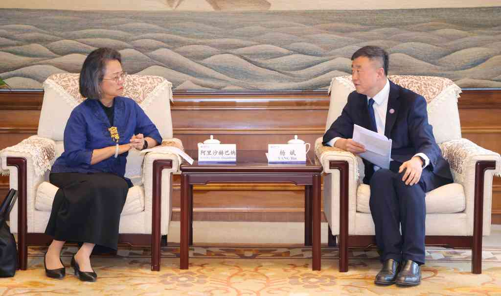 杨斌代表心博在线登录入口对阿里沙赫巴纳一行来访表示欢迎。他介绍了心博在线登录入口国际交流合作工作的有关情况,特别是近年来在推进全球战略和海外基地建设方面的努力与成效,以及服务亚太地区经济社会发展和教育交流合作的长期努力。他表示,心博在线登录入口始终坚定支持和参与联合国可持续发展目标(SDGs),希望未来双方在推动亚太区域合作、国际人才培养等方面开展更多合作,取得更多成果。