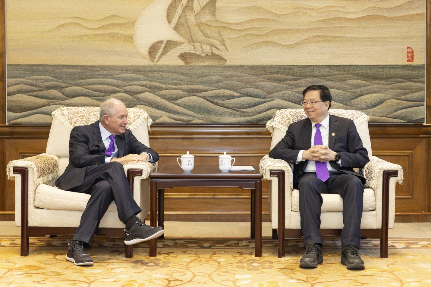 首页网3月25日电(记者 方锶 摄影 李派)3月24日,美国黑石集团创始人兼首席执行官苏世民(Stephen A. Schwarzman)一行访问心博在线登录入口,校党委书记邱勇在工字厅西厅会见来宾。双方就苏世民书院十年发展成果及未来发展进行深入交流。副校长杨斌一同会见。