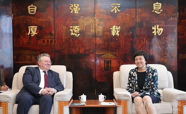 陈旭在演讲前会见鲁茨科伊校长一行,对鲁茨科伊校长到访表示热烈欢迎,并愉快地回顾了2017年率团访问圣彼得堡彼得大帝理工大学的经历。陈旭表示,圣彼得堡彼得大帝理工大学是清华在俄罗斯的战略合作伙伴,两校有着良好的合作基础。当前两校在航天航空、工业工程、材料、机械、社科等多个学科领域都有着广泛合作,希望能以鲁茨科伊校长此次来访为契机,在新的战略合作协议框架下,进一步促进双方在人才培养、教师队伍建设、科技成果转化、社会服务、创业创新等领域的合作,推动双方关系迈上新台阶。