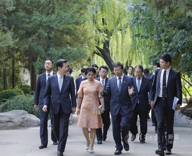 邱勇与山口那津男一行漫步清华园 李派 摄