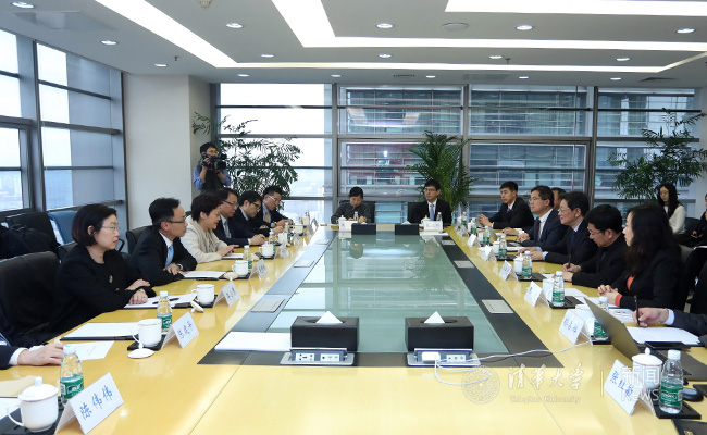 在清华控股座谈交流。杨艳宾 摄
