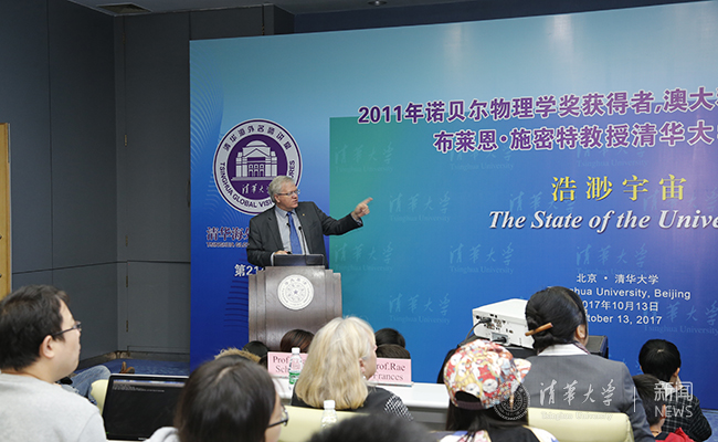 在演讲中,施密特教授从宇宙年龄、宇宙大爆炸等话题谈起,介绍了二十世纪初以哈勃、爱因斯坦为代表的科学家用实验观测和理论推演探索宇宙的历史。他详细讲述自己和同事们利用口径十米的凯克望远镜夜以继日地观测遥远星系里Ia型超新星爆发、最终发现宇宙加速膨胀的历程,该项发现被《科学》期刊誉为年度重要发现。2011年,施密特、里斯和珀尔马特为此获得了诺贝尔物理学奖。