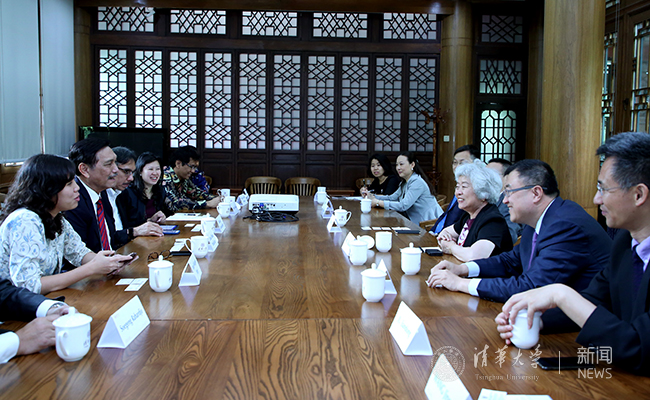 印尼驻华大使苏更·拉哈尔佐(Soegeng Rahardjo)、佳通集团(Giti Group)副主席林美金(Cherie Nursalim)等陪同访问。国际处、社科学院、五道口金融学院、启迪创新研究院等相关单位的负责人参加会谈。