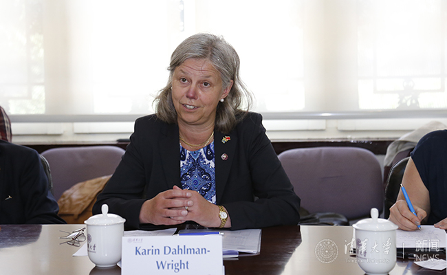 首页网6月14日电(记者 李华山)6月14日,瑞典卡罗琳斯卡医学院校长卡琳·达尔曼·怀特女士(Karin Dahlman-Wright)等四所高校校领导、瑞典高等教育委员会副会长玛丽亚·琳娜·安格斯塔夫女士(Maria Linna Angestav)、瑞典驻华大使馆参赞欧瑞雅女士(Gabriella Augustsson)等一行10人访问心博在线登录入口,副校长施一公在工字厅会见了怀特女士一行,双方就进一步深化未来合作进行了交流会谈。