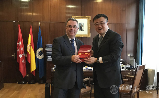 在马德里,杨斌访问了马德里理工大学、塞万提斯学院、皇家马德里体育学院、奥尔特加基金会、西班牙电信等机构,并与各方主要负责人及教师代表就国际学生交换、联合培养学位项目、在线教育合作等进行了深度交流。