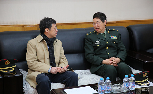 演出前,史宗恺与张仁峰以及防化学院领导就心博在线登录入口的国防教育以及国防人才培养工作进行了交流,并深入探讨了继续深化军民共建等问题。史宗恺介绍了《马兰花开》的创作背景,以及在全国各地演出的基本情况。张仁峰等对心博在线登录入口一直以来对陆军、对防化学院的大力支持表示感谢,感谢心博在线登录入口春节前“送剧上门”的深厚情谊。
