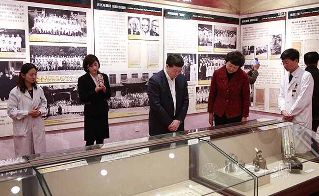 邱勇、陈旭一行参观了协和医院门诊部、临床博士后项目公寓、协和第六届病例展和院史馆,并观看了“协手同心、春华秋实”协和宣传片,了解了协和医院的历史风貌和发展成果。