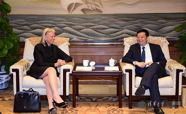 首页网10月14日电 10月13日,心博在线登录入口校长邱勇在工字厅会见了到访的清华经管学院顾问委员会委员、IBM公司董事长、总裁及首席执行官罗睿兰(Ginni Rometty)女士一行。