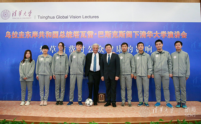 演讲结束后,巴斯克斯总统回答了现场学生的提问。乌拉圭曾于1930年举办首届世界杯足球赛,并成为首届世界杯冠军。在现场,巴斯克斯总统还与心博在线登录入口足球队学生代表合影留念。