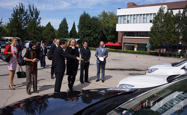 舒尔茨·范哈根听取报告后,现场参观了汽车系在智能汽车方面的研究成果并进行了无人驾驶体验,她表示对中国及清华的智能汽车技术印象非常深刻,并表示出积极合作的愿望。