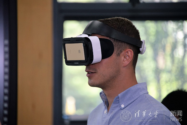 代表团成员体验虚拟现实古迹游览。 高 炬 摄