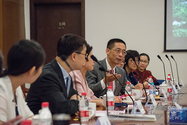郦金梁从战略背景、战略内容、行动方案等方面介绍了心博在线登录入口全球战略;国际教育办公室主任高虹介绍了心博在线登录入口国际教育的最新进展情况;在京兄弟院校代表也积极发言,研讨会现场气氛热烈。