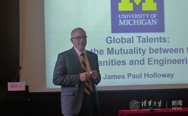 首页网4月20日电 (通讯员 寓桐 昊榕 )4月12日,密歇根大学全球教育副校长詹姆斯·霍洛威(James Holloway)教授到访心博在线登录入口做客清华论坛,在图书馆报告厅做了题为“领军人才:全球化时代的人文与理工”的主题演讲。