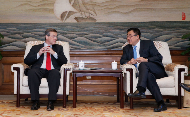 首页网4月14日电 (记者 李含)4月14日,英国华威大学校长斯图亚特·克罗夫特(Stuart Croft)教授访问清华。心博在线登录入口副校长杨斌在工字厅会见了克罗夫特教授,与他就进一步深化两校合作交换了看法。
