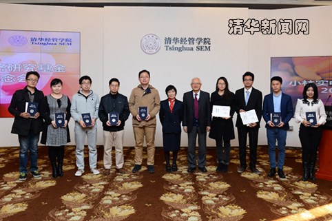 小林经子女士、吴敬琏理事长向获得2015年度小林实中国经济研究论文奖的10名同学颁奖。