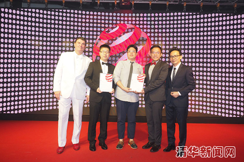 左1.红点奖创始人及CEO 彼特·扎克(Peter Zec)、左4.清华美院2015级研究生张印帅、左5.红点奖亚洲主席邱智坚(KEN KOO C.K.)。