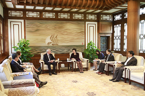 陈旭会见麦卡琼教授。记者 张宇 摄