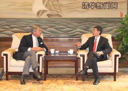 会见后,清华附中校长王殿军和美国阿什维尔中学校长蒙特格瑞先生分别代表双方签署了两校友好合作协议。姜胜耀、附中领导班子成员和阿什维尔中学部分学生及家长代表出席并见证了签字仪式。