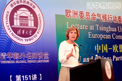 首页网4月25日电 4月23日晚,欧洲委员会气候行动委员、2009年联合国气候变化大会主席康妮•海德嘉女士(Ms. Connie Hedegaard)访问心博在线登录入口并做客海外名师讲堂第151讲,在主楼接待厅为清华师生带来了主题为“中国-欧盟:携手应对气候变化”的学术演讲。