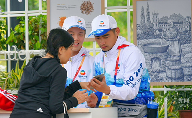 本次世园会清华志愿者队伍中还包括了10名来自韩国、西班牙、印度尼西亚等国的国际学生。来自韩国的经管学院学生郑惠英便是其中之一,她在韩国园负责引导游客,帮助展馆工作人员安排体验活动。郑惠英说,能加入这次世园会志愿者队伍感觉非常幸运,志愿中心也非常细心地将自己安排在韩国园,看到有更多的人通过世园会了解韩国文化感觉非常开心。