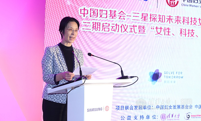 “探知未来科技女性培养计划”由中国妇女发展基金会与中国三星共同发起的,旨在通过引入国际先进的“STEM”教育理念(科学、技术、工程、数学等学科总称,鼓励用跨学科知识技能解决问题),培养12-16岁女性接受新科技、新技术的能力,鼓励她们灵活运用所学知识技能解决生活中的实际问题,从而提升科学教育对女性的影响力的公益项目,着力于为中国未来培育出更多具有创新能力、领导能力、敢于担当、自信自强的科技女性人才。