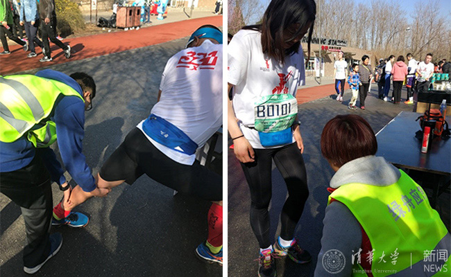 比赛正式开始前两小时,绿舟专业救援人员带领学生志愿者沿赛道设立17个应急站点和1个总指挥站,并派遣5辆救护车驻守于另设的5个站点,竭力保障参赛者安全,协助比赛举行。赛事中参赛者出现的身体不适主要为脚踝和膝盖的疼痛或扭伤。志愿者们协助绿舟的专业急救员热情地帮助他们,第一时间解决问题,并在需要时提供饮用水和食物。