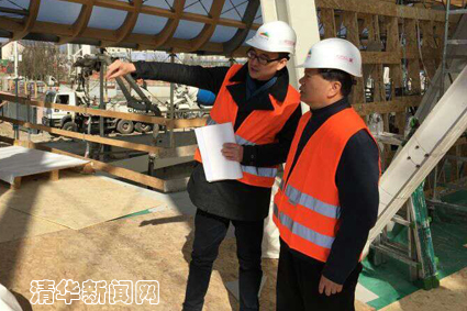 2014年11月,中国馆地面施工开始。心博在线登录入口美术学院先后委派心博在线登录入口美术学院副院长苏丹、环境艺术设计系副教授陆轶辰、环境艺术设计系副教授汪建松、工业设计系周艳阳以及赵华森等多位中国馆设计项目组成员驻扎工地,现场指导工作。