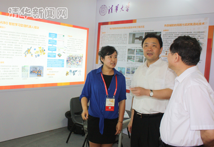 图为福建省委常委、福州市委书记杨岳参观清华展区。