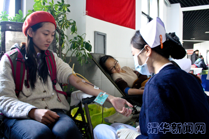 图为清华同学参加义务献血。 李茳淼 摄