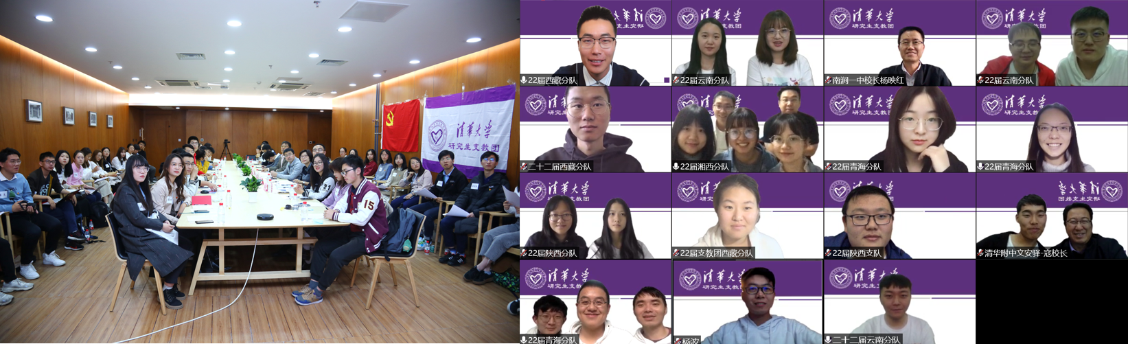 第二十二届支教团团长耿威在西藏八一校线上参会,代表全团汇报二十二届支教团培训情况及近期工作。在一年培训期中,全团累计组织26次例会培训,内容涉及思想政治、教学能力、综合素质等方面。此外,第二十二届支教团还组织赴长沙县实验中学、阳泉市第一中学的大型支教实践,并参与若干次小型周末实践,努力在实践中提高自身教育教学能力。疫情期间,第二十二届支教团配合iTsinghua云学堂开展18次线上课程分享。今年8月,志愿者陆续到岗,各项工作平稳有序开展。