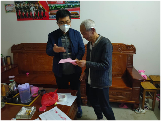 杨昊到贫困户家宣传扶贫政策(2020年2月)