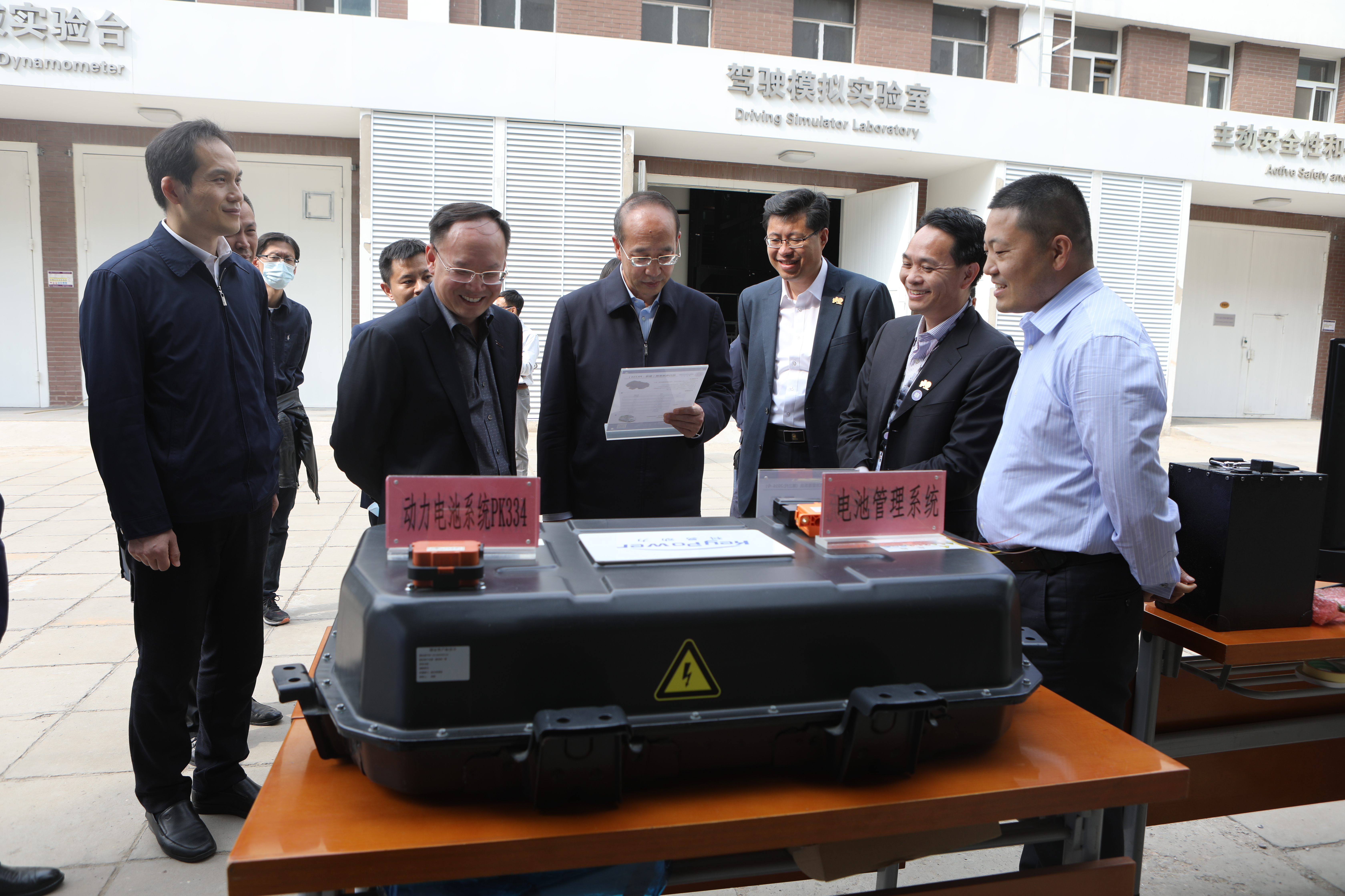 座谈会前,吴靖平、邱现东一行参观了车辆学院的智能汽车、新能源动力系统展区,以及驾驶模拟、电池安全实验室,交流了相关科研成果进展情况。