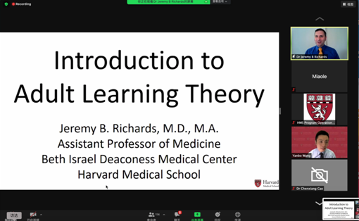 哈佛医学院师资培训项目课程负责人杰里米·理查兹(Jeremy Richards)介绍了2021年心博在线登录入口临床医学院师资培训项目的整体计划、培训主题与内容、第一次工作坊的培训内容、授课师资、作业与考试要求、课程答疑等详细安排。