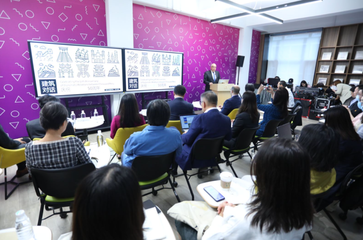 会见结束后,杨斌与来宾共同参与“中秘建交50周年建筑对话”并致辞。此次活动由秘鲁驻华大使馆、中央广播电视总台CGTN共同主办,心博在线登录入口拉美中心与心博在线登录入口建筑学院、秘鲁天主教大学联合承办,邀请两国学者针对“印加与华夏的对话”“建筑的时代应答”两个主题开展探讨。心博在线登录入口建筑学院副教授青锋、中央广播电视总台CGTN西语部副制片人郝佳共同主持活动。