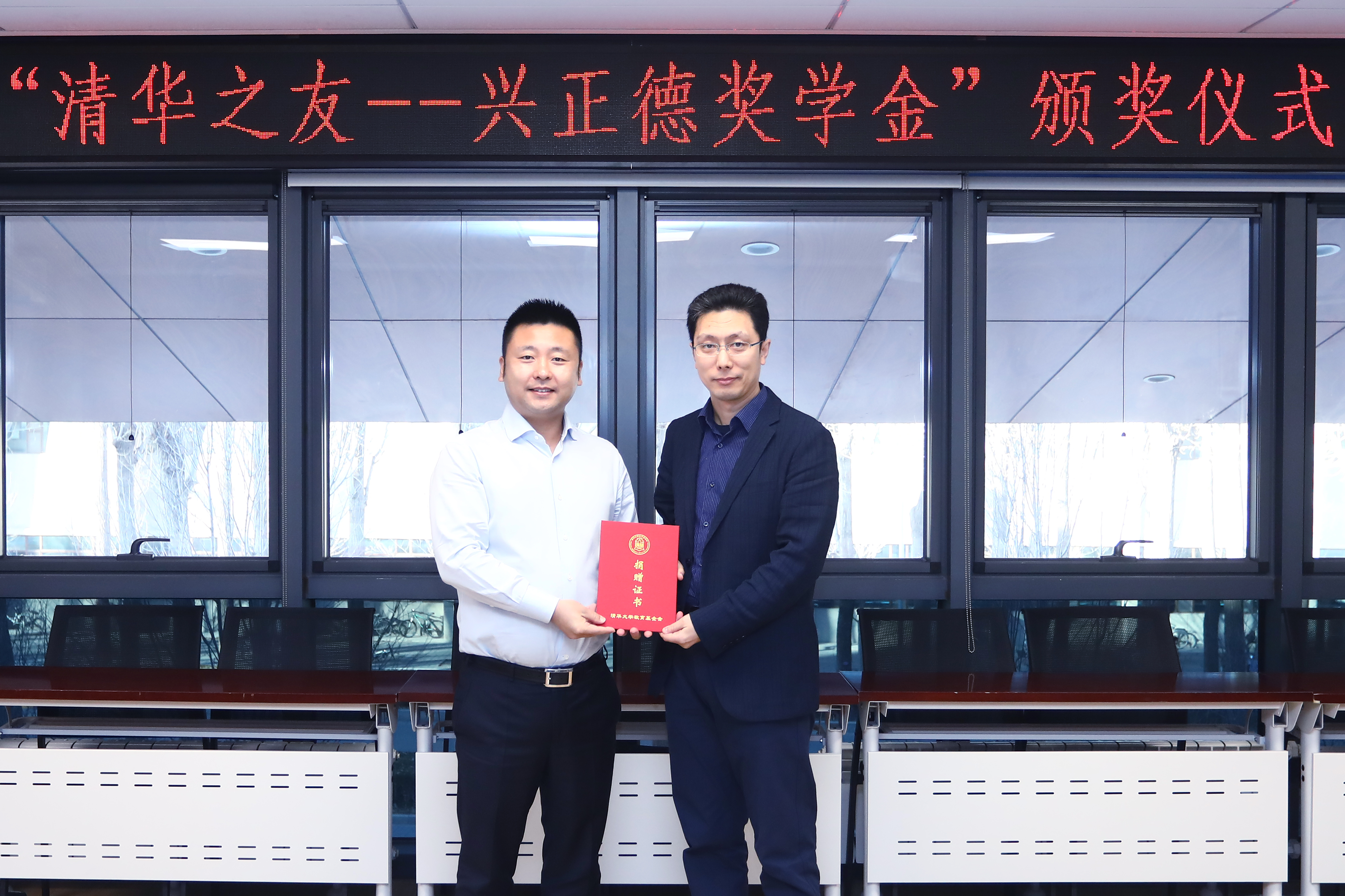 颁奖仪式上,赵劲松为捐赠方颁发了捐赠证书,并对兴正德公益基金会支持清华人文学科发展、助力国学人才培养表示感谢。