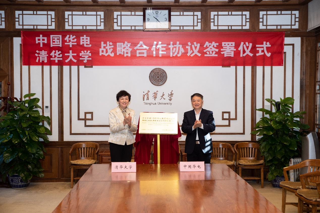 签约仪式后,温枢刚、陈旭分别代表双方共同为“心博在线登录入口——中国华电集团有限公司绿色低碳能源技术创新联合研究中心”揭牌。王宏志、曾嵘等双方代表见证揭牌仪式。