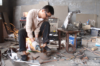 刁军翔在金属焊接实验工作室。