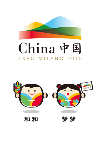 中国馆的主题是“希望的田野”。在标识设计中,顾欣用线与面勾勒出大自然的轮廓和曲线,蓝色代表天空;绿色代表田野;金色代表粮食;红色代表人和生命;水墨纹理代表中国传统文化。图形透叠寓意世间万物和谐共生、天人合一的传统思想。中国馆标志、四个基础色调、水墨绘画辅助图案,经过拆分重组,提供了一个可延伸的设计结构。标识体现了“天、地、人、和”的整体设计的理念,透叠的设计语言也与米兰世博会的主标识相呼应。吉祥物的设计同样源自“天、地、人、和”中的“和”字。其中文名字为单字“和”。“和”由“禾”和“口”组合而成。“禾”代表水稻,延伸意义为粮食;“口”代表饮食,延伸意义为人口。借鉴中国传统民间艺术“大阿福”的典型形象,身躯源自“和”字中的“口”字,手拿体现“禾”字的稻谷,形象具有积极、友善、乐观的精神,吉祥物寓意不仅紧扣世博会主题,也与中国馆主题相吻合。