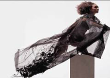 她不断地创作,不断地寻找材料,却有着一贯的风格。她认为“每一种材料就像一个孩子一样,有它的特性和可塑性,质地和色彩都饱含感情的因素。”她早期使用纸材料创作,希望创作具有水墨感,动静虚实相结合的作品;后来开始寻找中国的丝,但还是觉得材料缺少充足的表现力。在一个偶然的机会下,她接触到了朋友自织的“水纱”,这种如马王堆蝉衣般柔顺、轻薄的材料让她一下找到了感觉。“我喜欢那种看上去很含蓄,但是有一种内张力,能渗入到心里去的材料。”于是,她开始了与材料的对话。她把材料当作“基因”,进行“分解”再创作。经过无数次的尝试,创作了一组组服装作品、装置作品和纤维作品。这些作品充满了水墨般的情怀和中国式的意蕴,传统与现代结合,简约与大气并重。李薇一直追寻厚重大气、简约动感的创作风格,既根植于中国传统文化的土壤,又在中规中矩里多一份个性和颠覆,正是因为这一贯的审美感和创意感,才使得李薇的作品材料多变而风格鲜明。最近,她的作品材料又变了,颜色也变了,且跨界到了屏风、壁挂,“我不能一直沿着过去的走,要不断探讨新材料和新手法”。